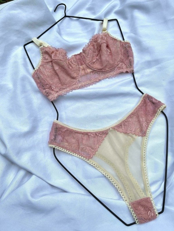 Este conjunto incluye un corpiño con aro que brinda soporte sin sacrificar la suavidad, y una bombacha entera estilo less que se adapta perfectamente al cuerpo, resaltando curvas con elegancia.